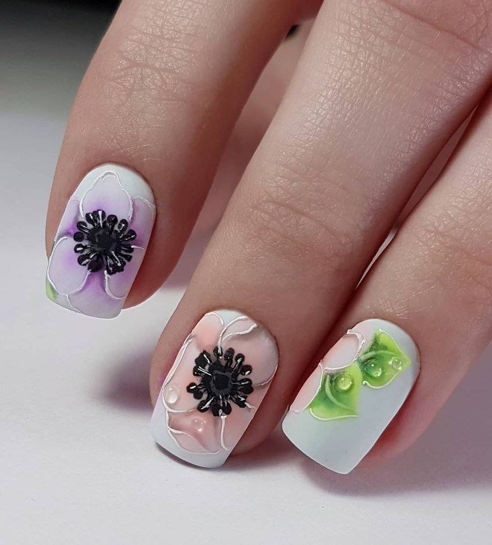 Можно выполнять нежные рисунки, яркие миниатюрные, сочные и лаконичные. Особенно модными будут узоры, для выполнения которых используется тонкая кисточка. В тренде: