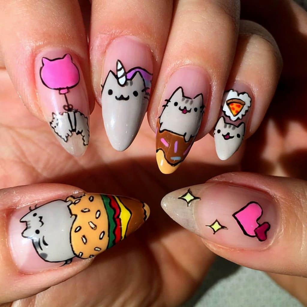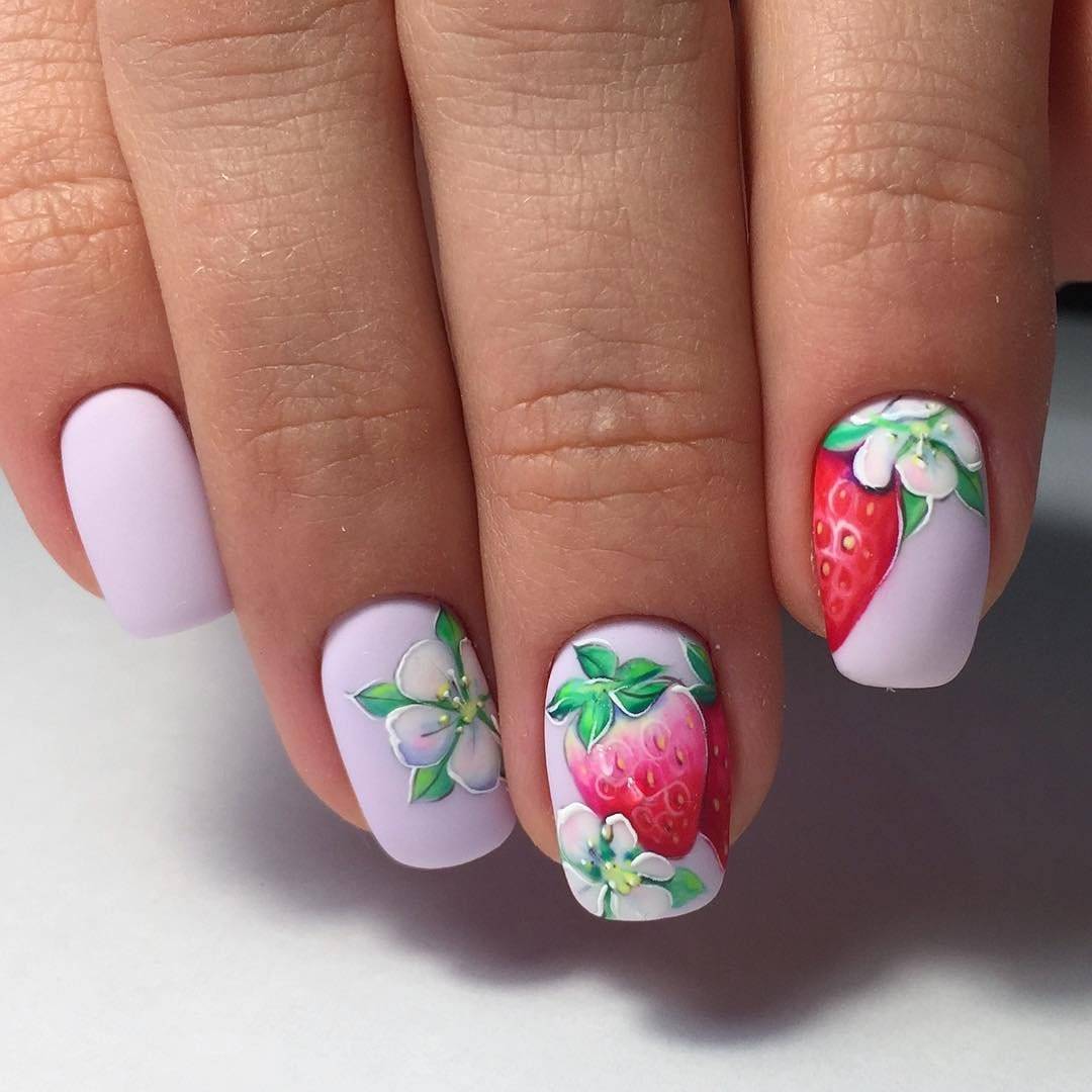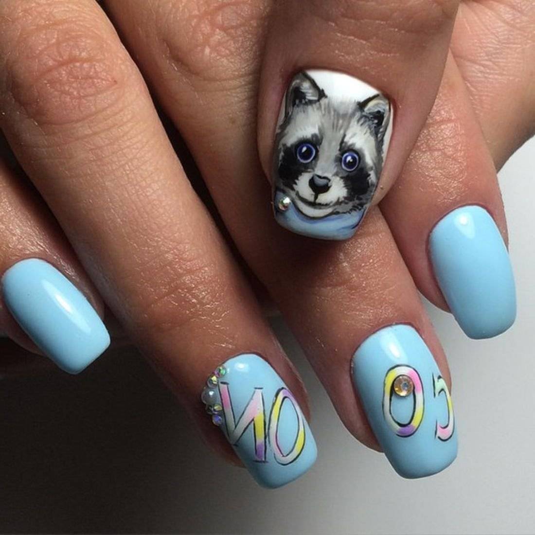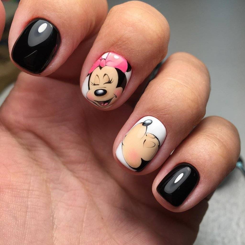 Красивый маникюр для лета получится, если яркое покрытие на короткой длине дополнить акцентными ноготками, на которых будут изображены герои анимационных фильмов, сказок или компьютерных игр. Этот тренд будет особенно актуальным в следующем году. Также мастера предлагают рисовать персонажей комиксов или любимых фильмов.