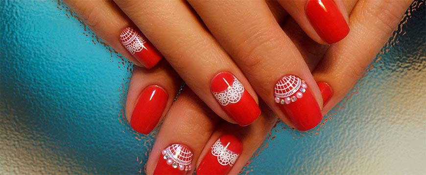 Наиболее востребованы для маникюра в красных тонах «переводилки», которые позволяют получить отличный вариант, сэкономив время мастера.