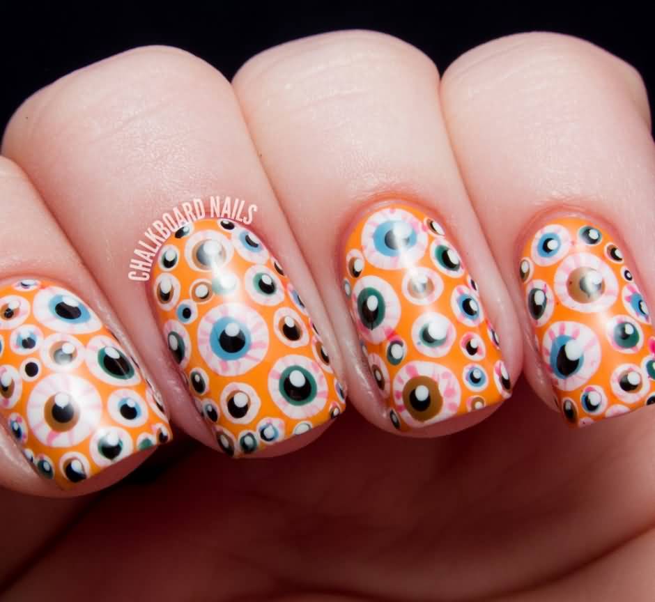 Выбирайте красный, изумрудный, бордо, глубокий синий, оранжевый, лимонный и другие оттенки лака. Эти цвета лучше всего передают настроение и считаются лучшим выбором для креативного дизайна.