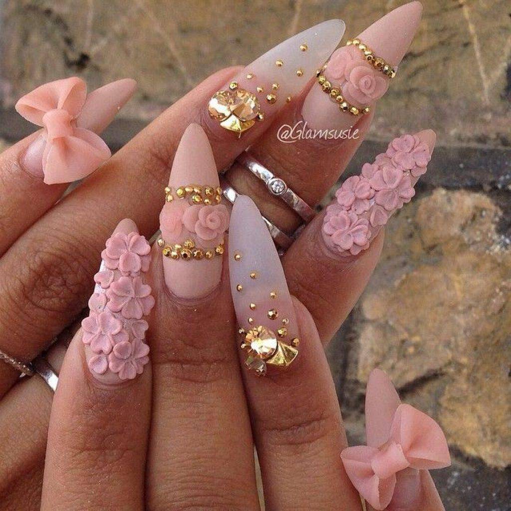 Длинные ногти после непродолжительного забвения вновь становятся популярны среди модниц. Это прекрасное «поле» для создания стильных узоров со стразами, даже крупными.