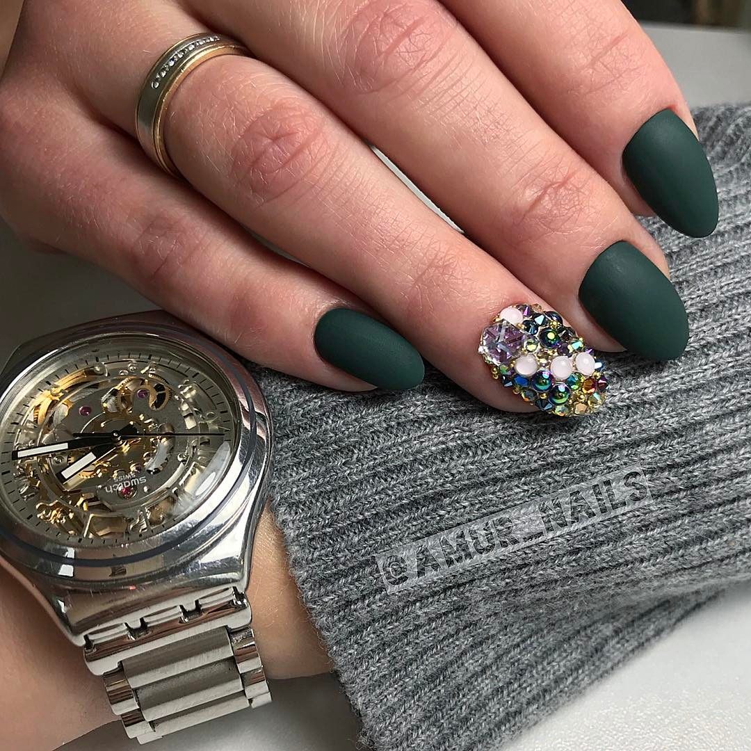 Матовые ногти со стразами