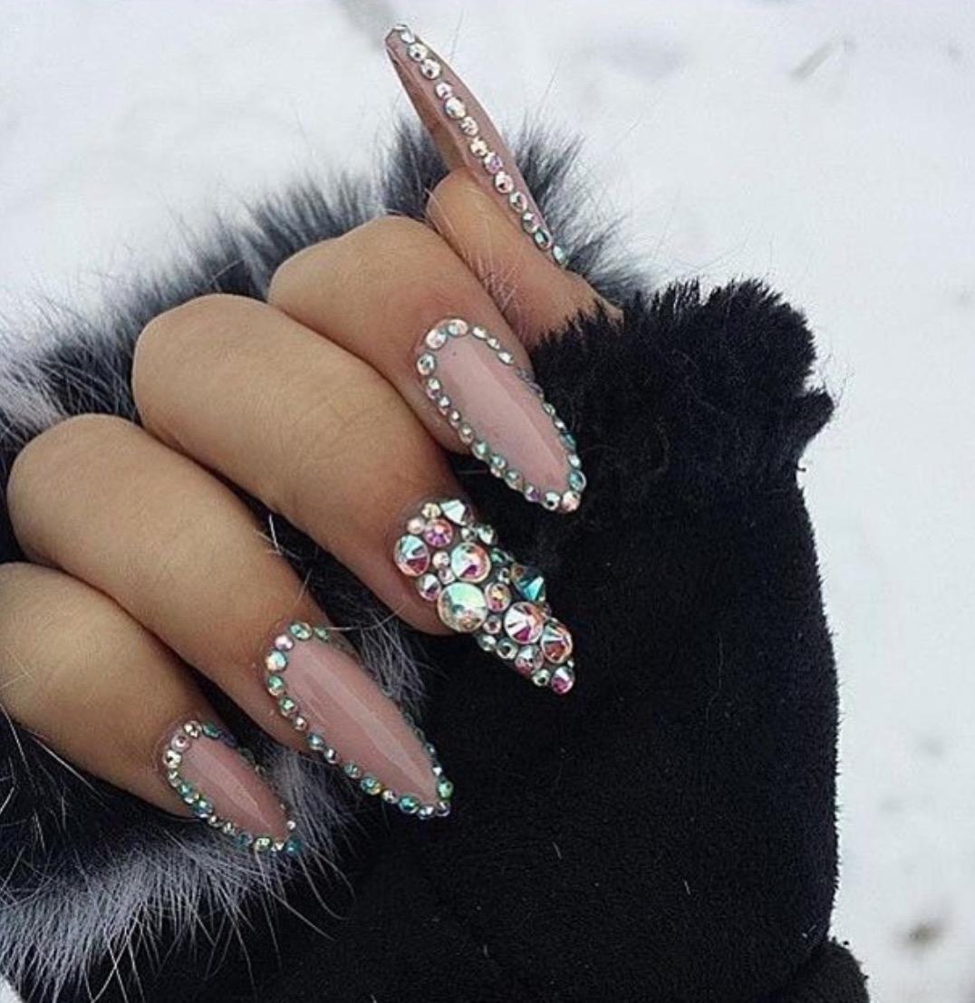 Стразы на длинных ногтях