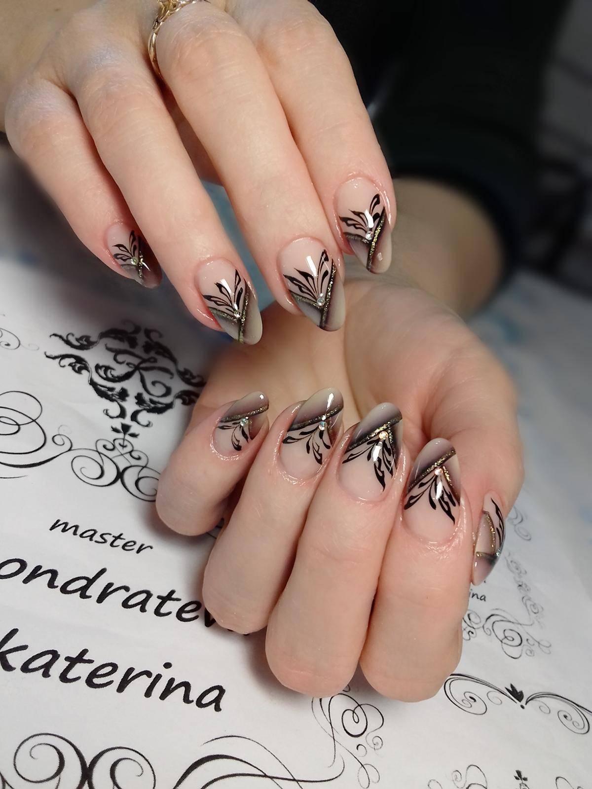 А монохромная гамма придает образу некоторую важность и аристократичность. Гардероб желательно подобрать в тон такому маникюру