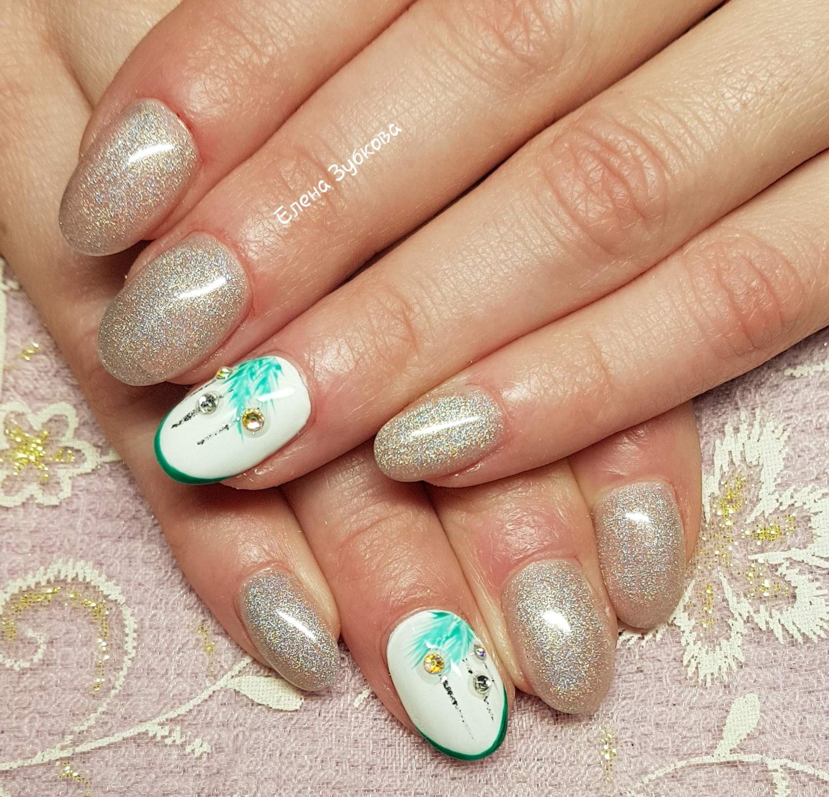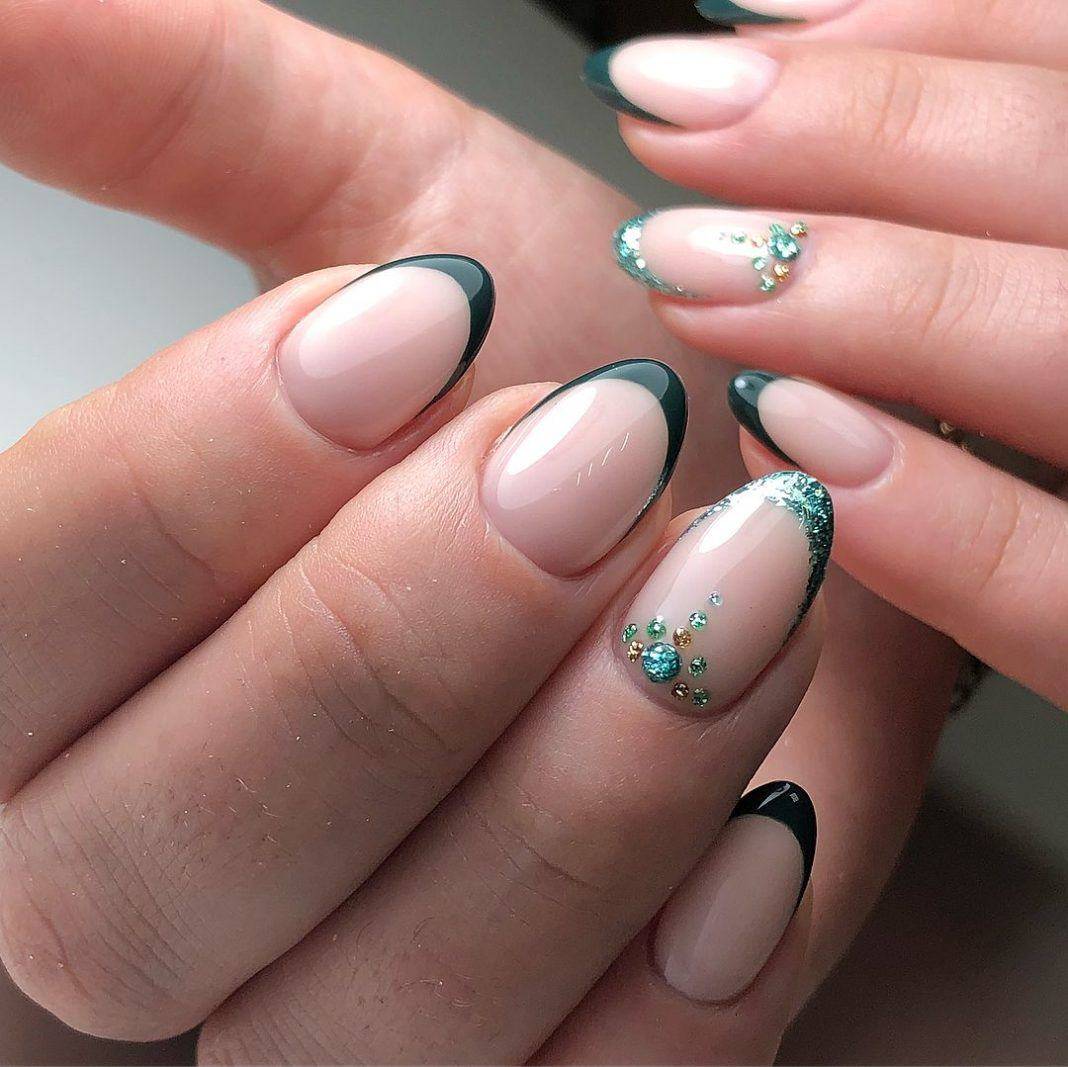 Стразы и блестки отменно впишутся в вечерний дизайн ногтей, особенно, если есть «поддержка» в виде красивого макияжа, да еще и с блестящими элементами. Популярным вариантом дизайна, который используется для новогоднего маникюра, вечернего, праздничного – это космический нейл-арт. Также в тренде использовать темные оттенки с блестками разных цветов, объединение блесток и страз в одном дизайне.