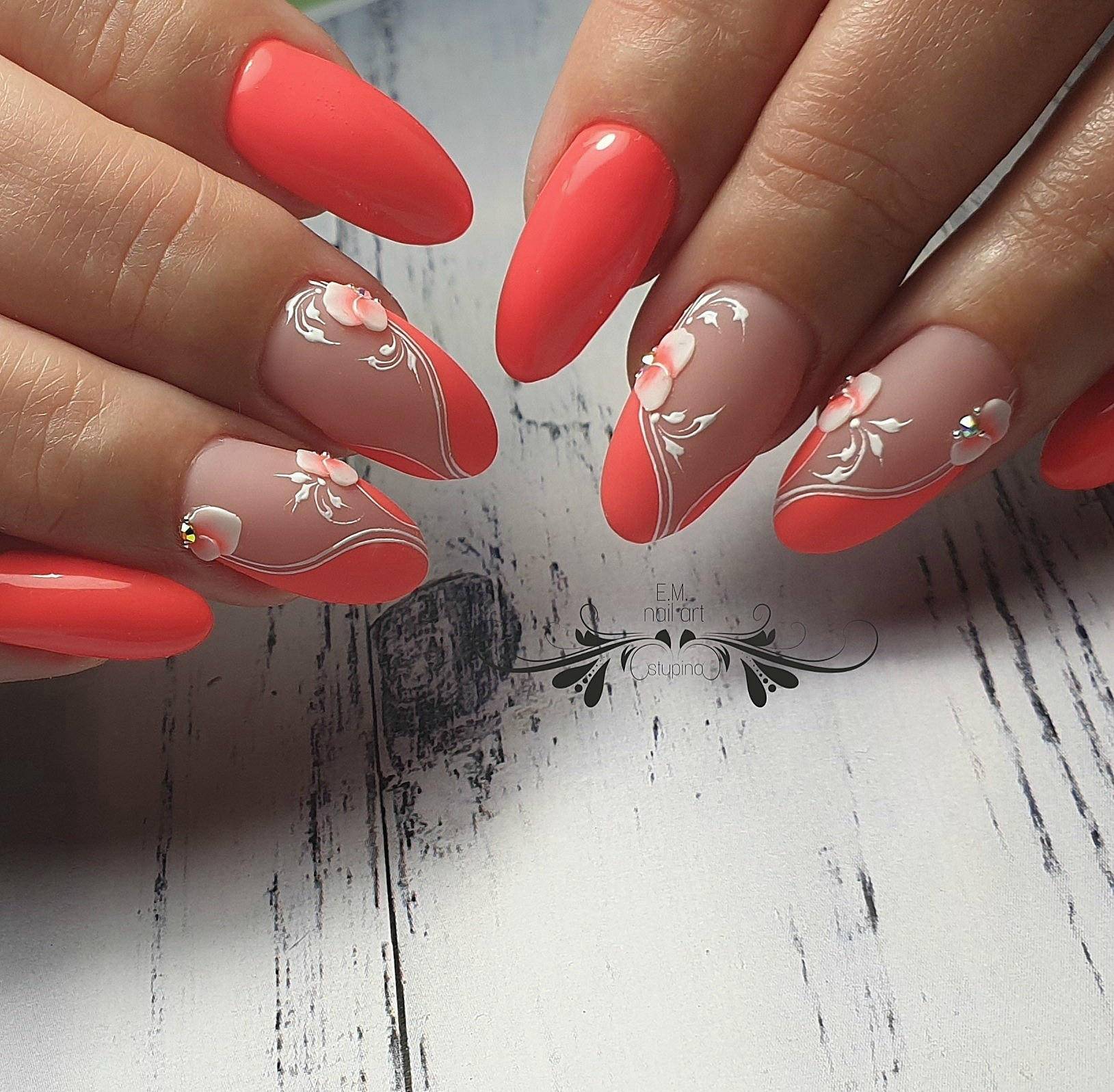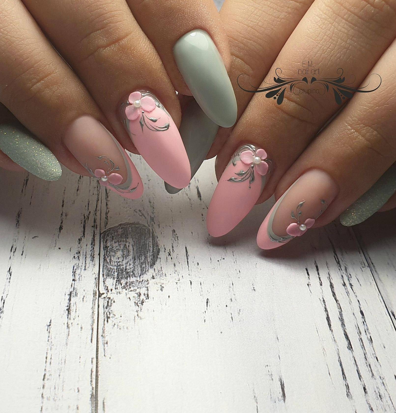 Оригинальным решением будет нанести лепнину на половину ногтя, а другую половину оставить с глянцевым покрытием.