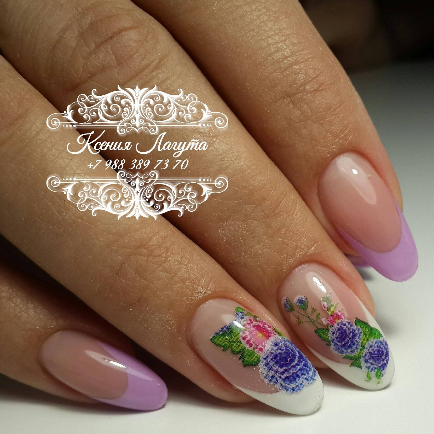 1. Предварительно покупаете специальные наклейки. Наносите на ногти лак фонового цвета, приклеиваете выбранный рисунок и ваш маникюр готов!