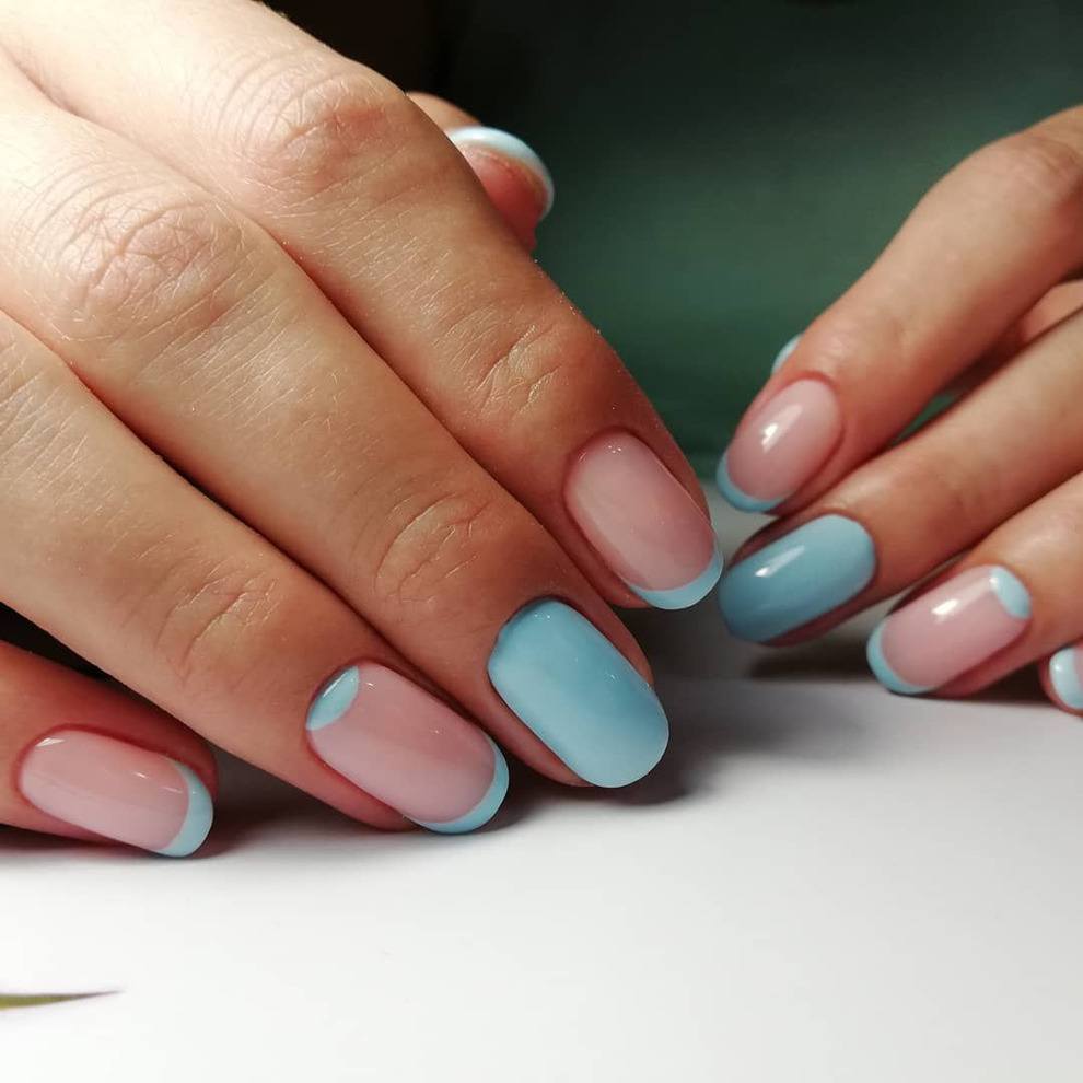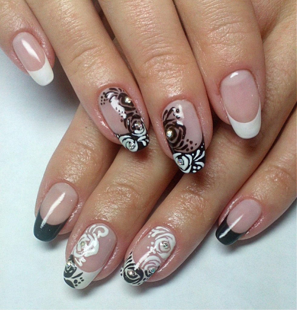 Этот тип маникюра должен быть основан на контрастных цветовых взаимоотношениях. Самыми распространенными яркими и интересными сочетаниями являются взаимодействие с черным белого, розового, бежевого, красного, бирюзового цветов. А с белым прекрасно сочетаются голубой и розовый.