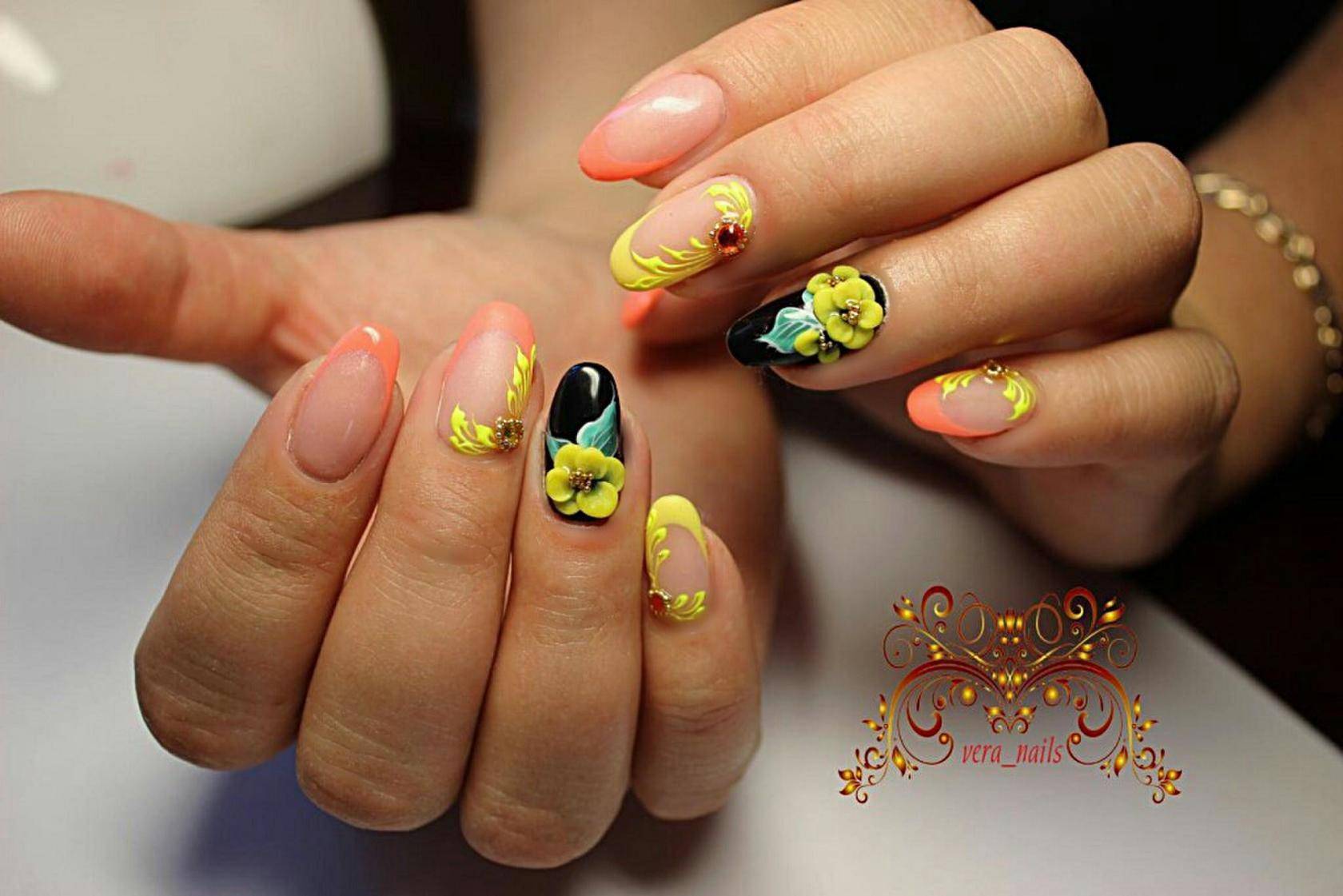 - узор, наносящийся кисточкой непосредственно на ногтевую пластину.