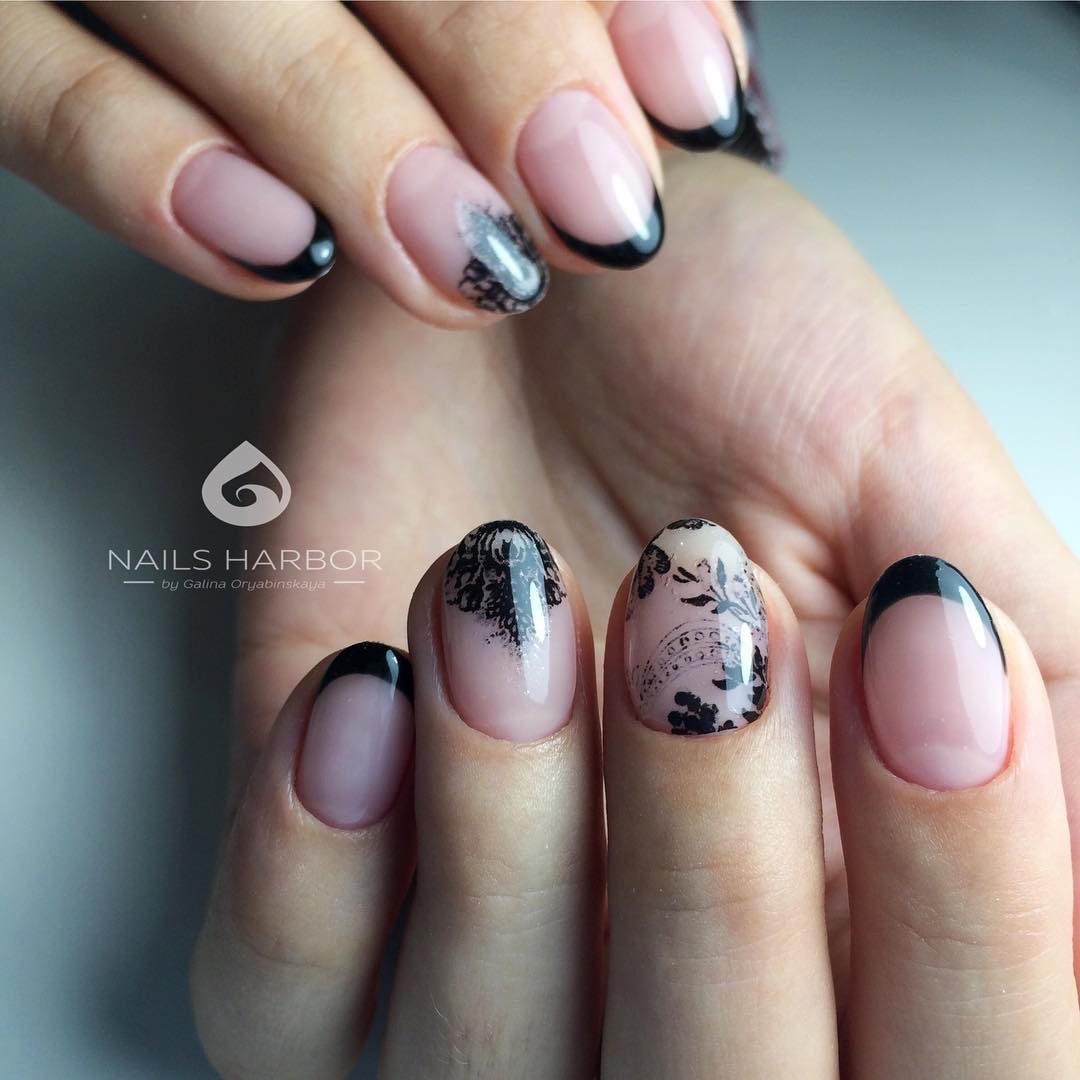 Для украшения коротких ногтей элементы должны быть более мелкими, чем для длинных, так они будут выглядеть более гармонично. Нарядно, но не вычурно, смотрится маникюр с черным кружевом, например французский или лунный. Кружевом могут быть украшены не все ногти, а только несколько избранных. Причем вы можете нанести на каждый ноготь свой узор, это тоже будет выглядеть интересно и оригинально. Это те варианты нейл-арта, которые всегда хорошо будут смотреться, если вы предпочитаете короткие ногти.