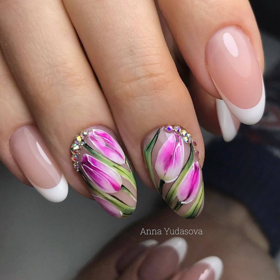 Для обозначения линии улыбки и линии дуги, мастера предлагают использовать различные цвета. Учитывая модные тенденции можно отдавать предпочтение оттенкам, выполненным в сезонной гамме. В тёплое время года модно использовать на ногтях цветочные, фруктово-ягодные и различные другие мотивы в ярких исполнениях. Осенью красиво расписывают ногти узорами на осенние мотивы. В зимний период актуальны снежно – новогодние мотивы, сверкающие и блестящие элементы