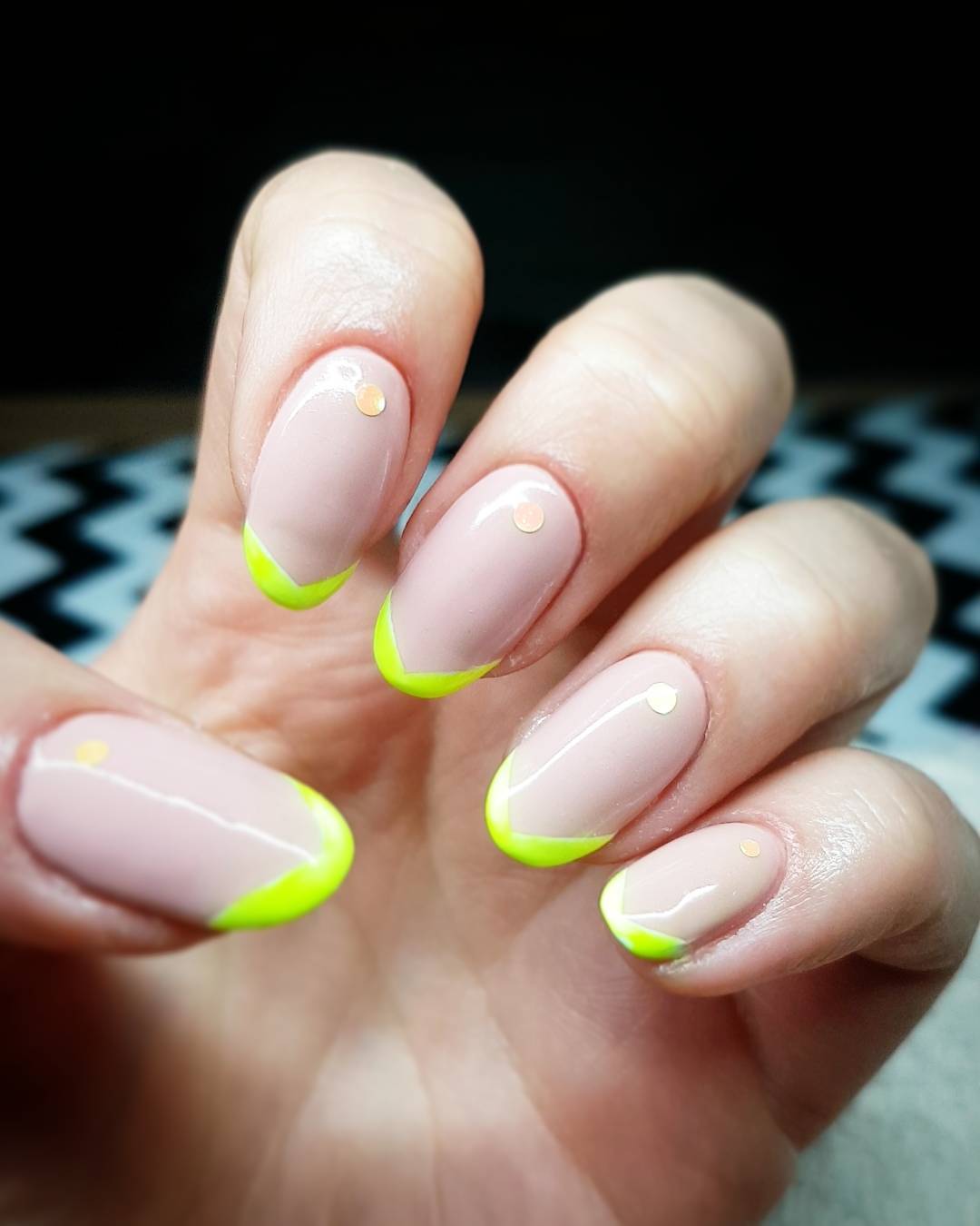 Дизайнеры ногтевого сервиса предлагают разнообразить традиционный французский нейл яркими красками, и обратить внимание на цветное исполнение френча. Палитра цветных оттенков вмещает в себя почти все известные нам тона. Красочные рисунки предполагают не только контрастные линии, но и цветной переход между ними