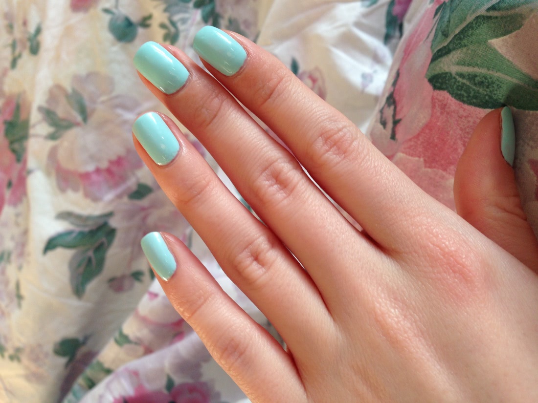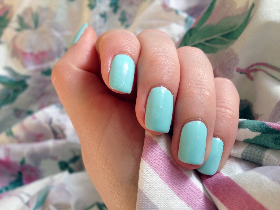Цвет: Цвет у оттенка бледно-голубой с намеком на зеленый, пастельный, даже очень. Не имеет, перламутра, шиммера и блесток. Вроде бы такой трендовый уже не первый сезон стильный, модный, молоде. , а у меня вызывает ассоциацию с эмалированной посудой времен молодости моей мамы.