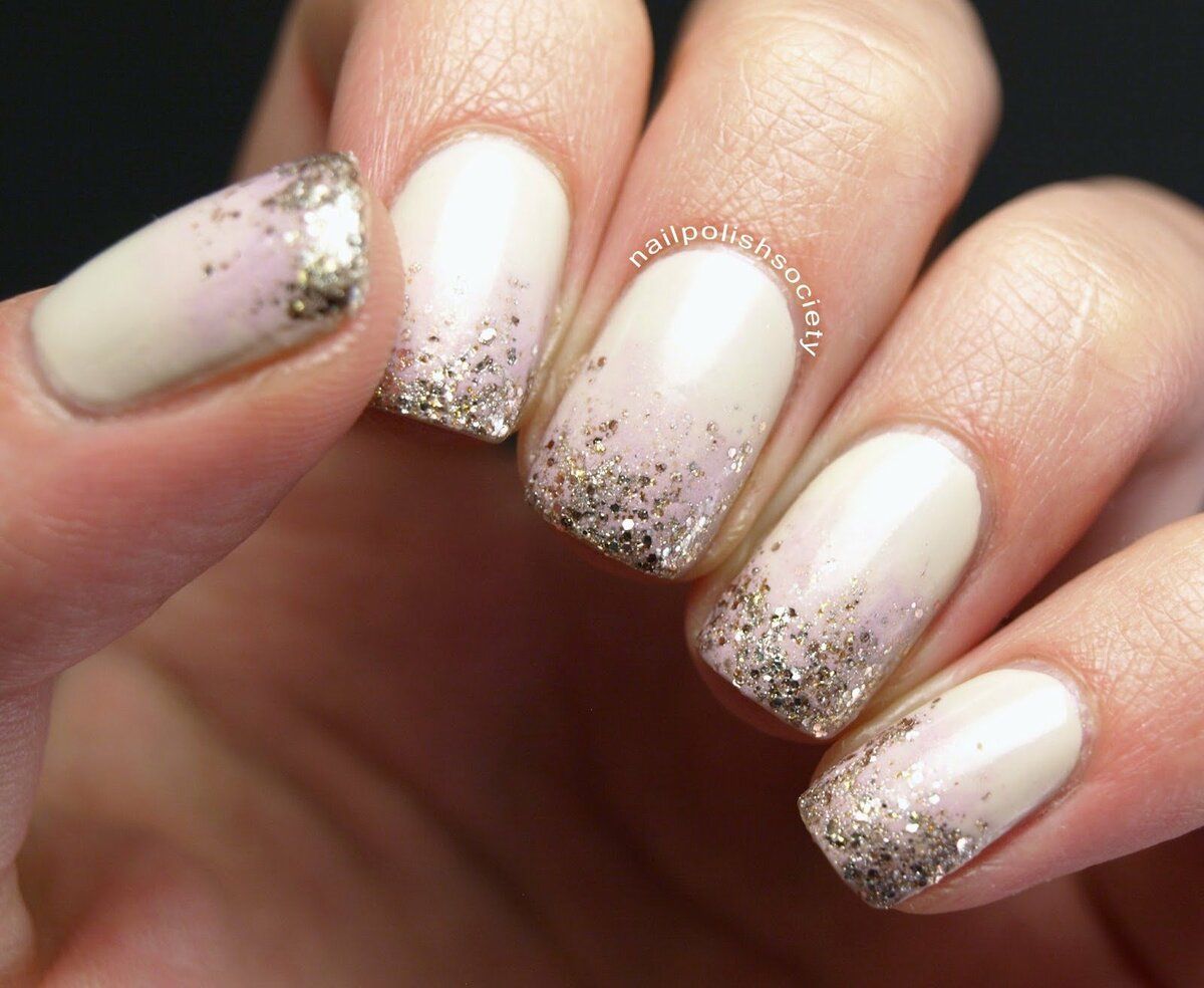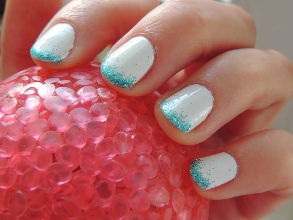 эффектный маникюр с белым лаком и блестками в стиле «омбре»