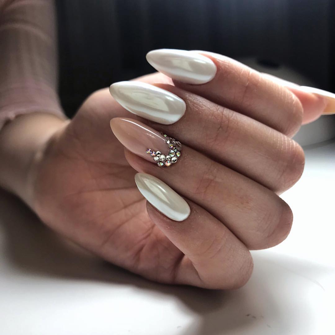 Белый маникюр с втирками