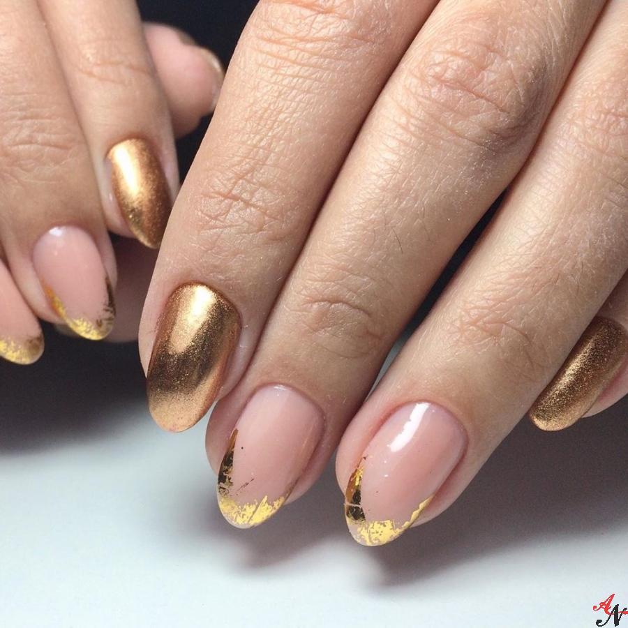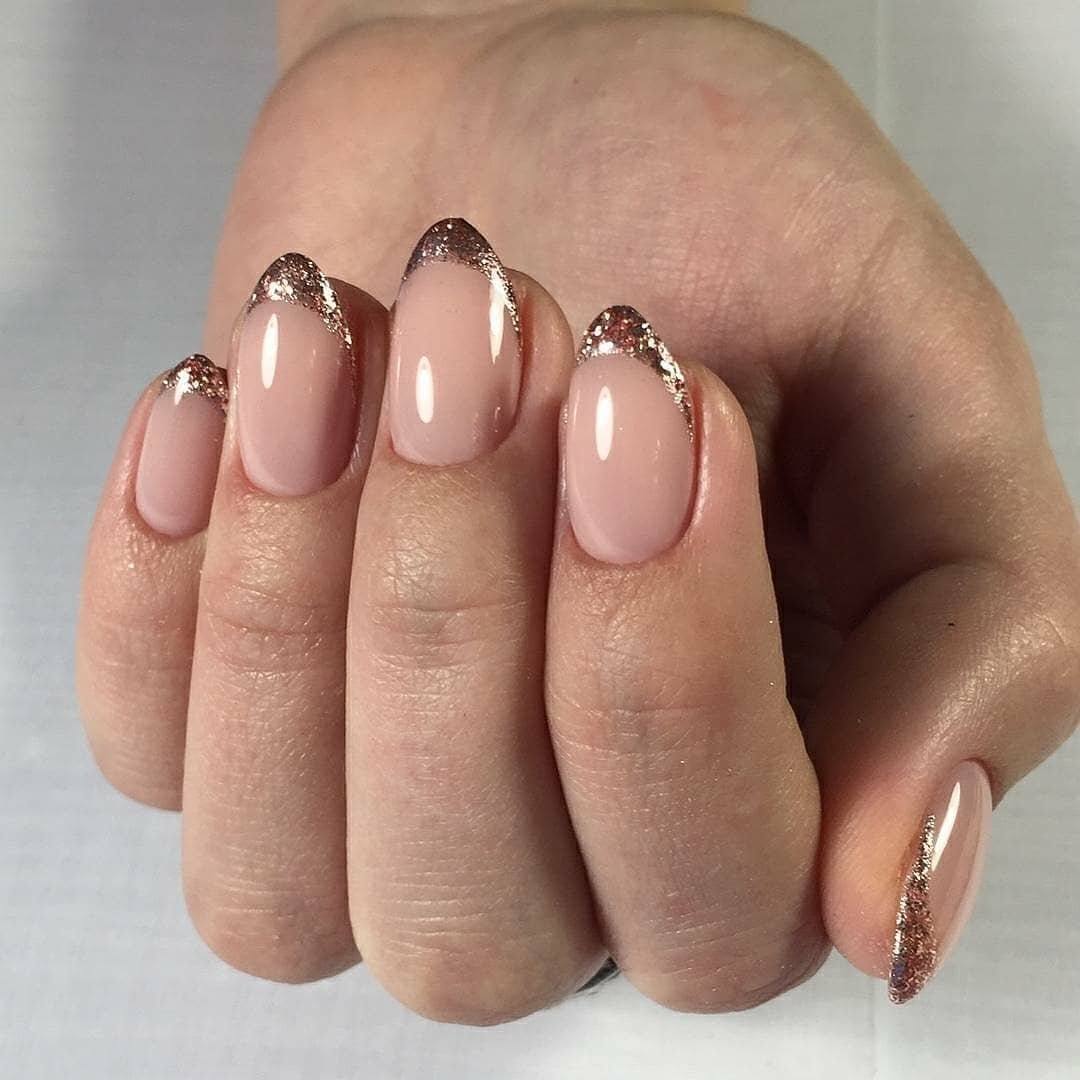 Это тот же французский маникюр, только край ногтевой пластины оформлен с помощью пайеток или напыления. Ногти с таким маникюром смотрятся очень стильно и модно. Он подойдет больше для праздников и вечеринок.