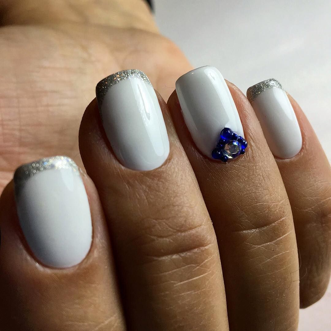 Белые ногти с блестками, фото маникюра