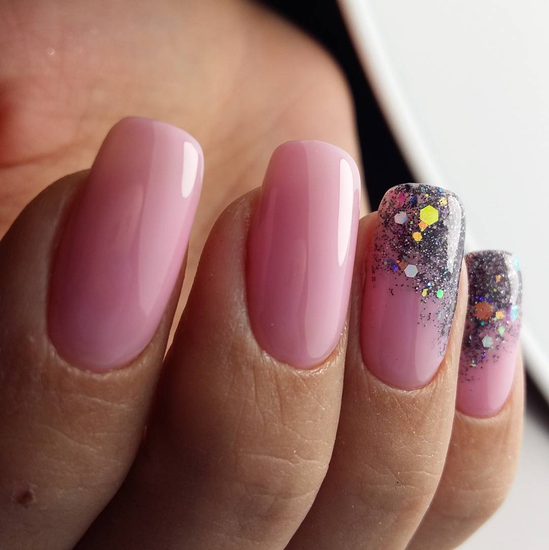 #2 Стильный нежно-розовый маникюр с блестками