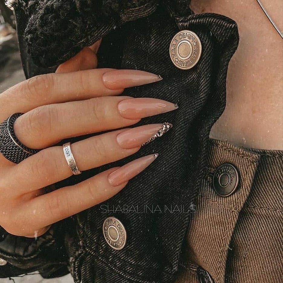 Несколько идей современного и модного маникюра на нарощенных ногтях с использование блесток: