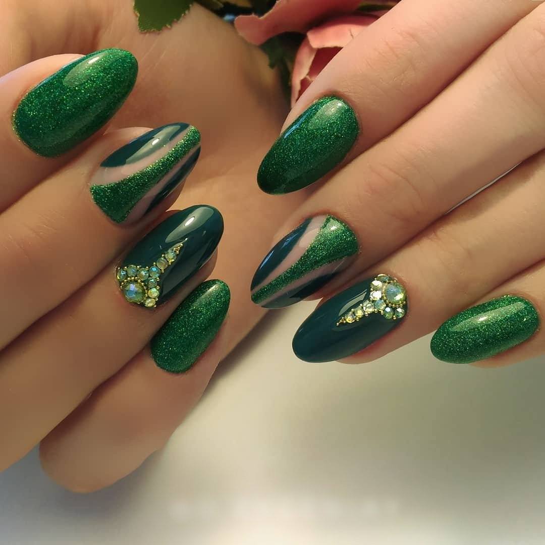 Оригинальные идеи создания зелёного нейла с блёстками