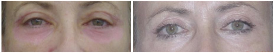 Сокращение кожи нижних век после фракционной лазерной шлифовки.