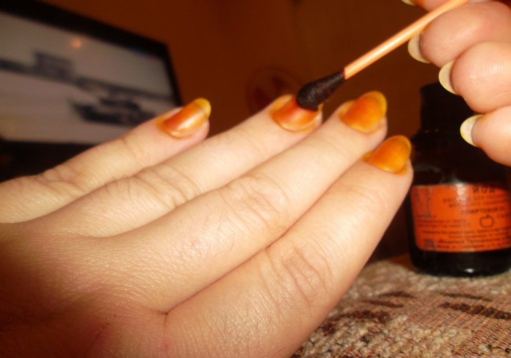 - Необходимо наносить лекарственное средство лишь на пораженные участки кожи и ни в коем случае не задевать здоровый эпидермис. Дело в том, что смазывание ногтей йодом может стать причиной ожога, поэтому не стоит мазать им всю стопу в профилактических целях.