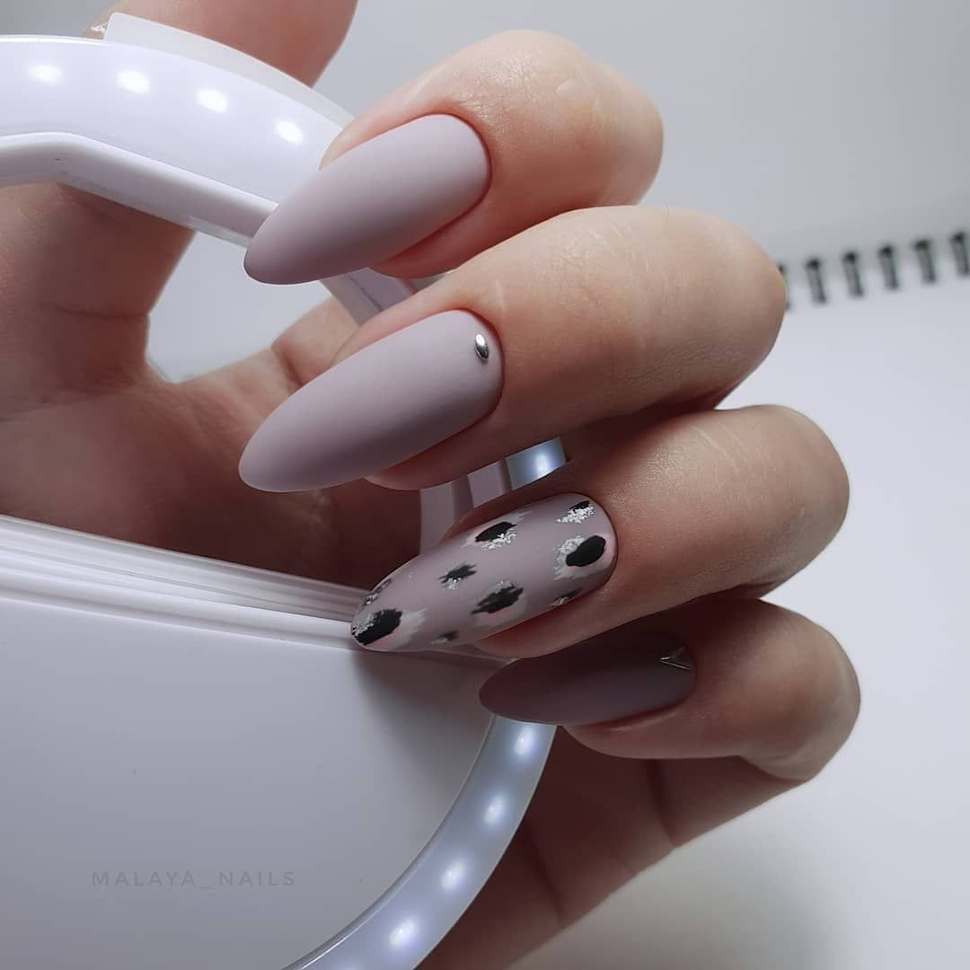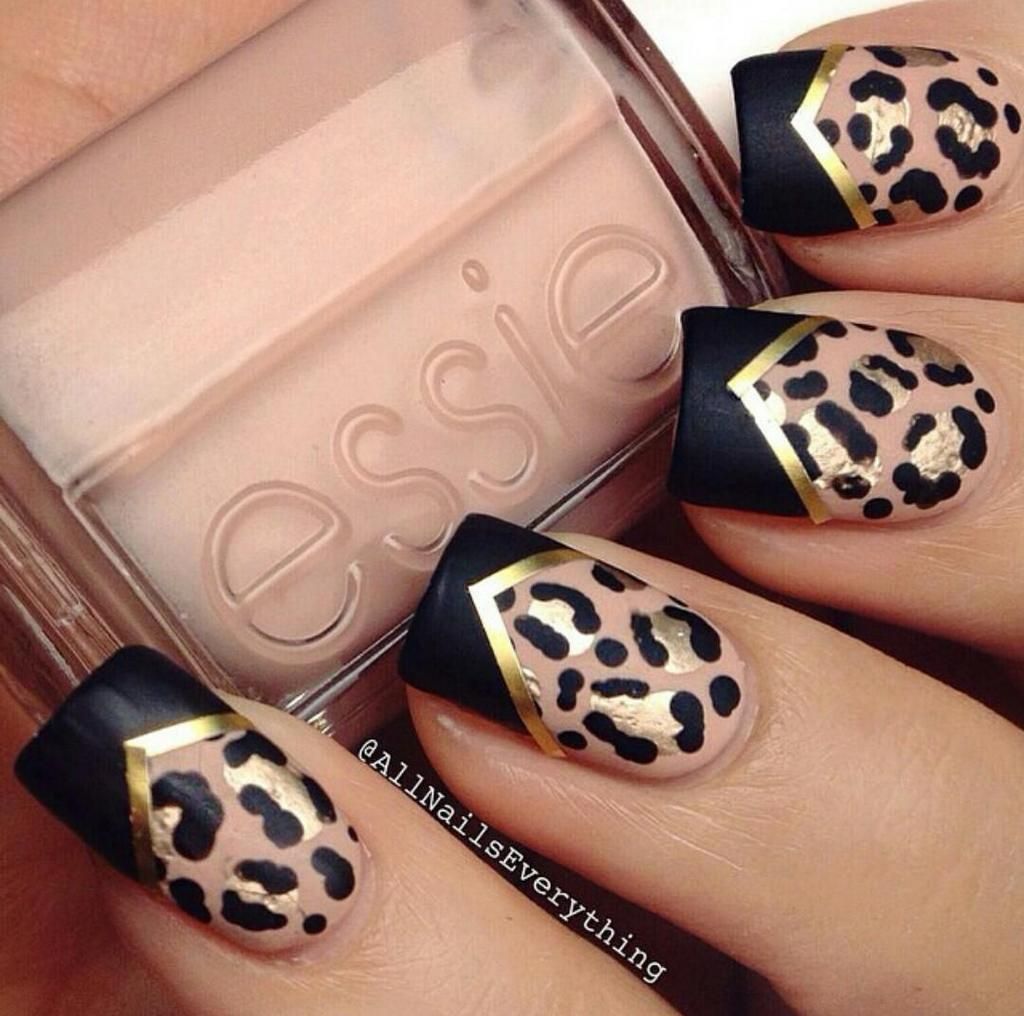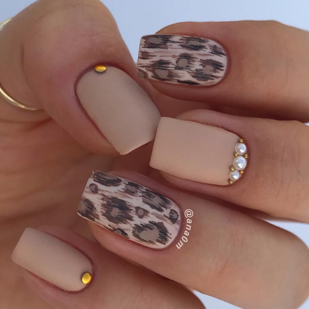 Нюдовые оттенки настолько универсальны, что способны приукрасить даже столь оригинальный леопардовый принт. Используйте нюдовые матовые гель-лаки, сочетайте их с фольгированными полосами.