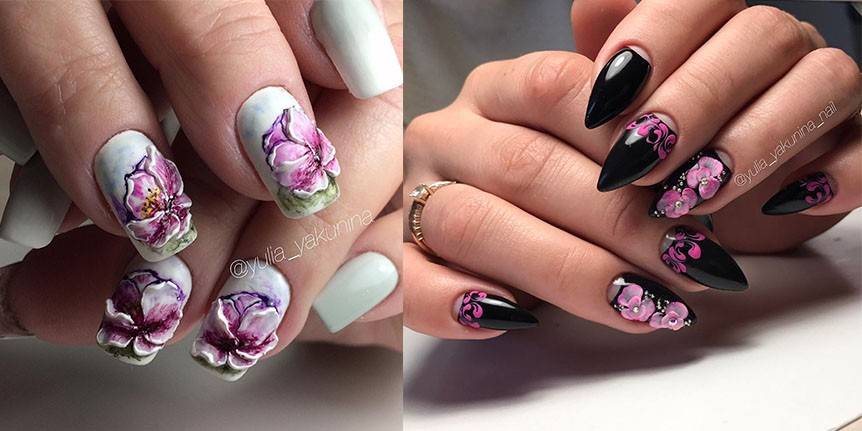 Теперь нужно проявить свою фантазию и определиться с желаемым рисунком. Новичкам лучше всего отдать свое предпочтение флористической тематике (цветы, листья, фрукты), поскольку такие изображения наносить легче всего. Кстати, уже набив руку в этом деле, в дальнейшем можно будет выполнять на ногтях более сложную объемную лепку, включающую в себя фигурки всевозможных животных, птиц, бабочек — все будет зависеть от полета фантазии.