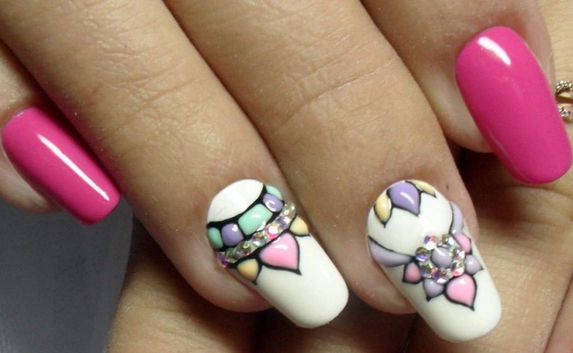 Чтобы расставить акценты на некоторых ногтях, используют декоративные элементы: рисунки, стразы, бусины, наклейки