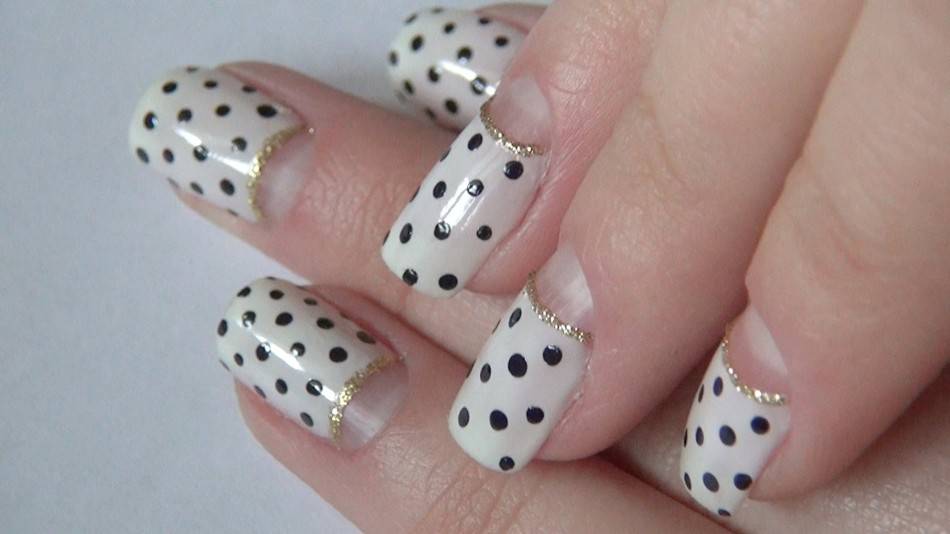 Если вам непременно хочется разнообразия — обратите свое внимание на лунный маникюр в горошек. Стильный лунный маникюр в горошек