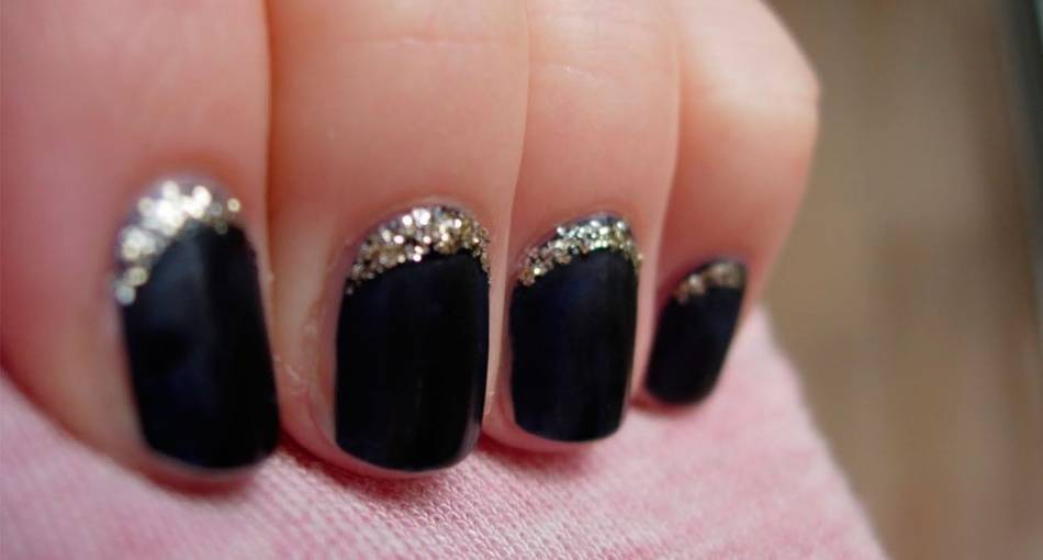 Обратный френч с блестками золотого цвета