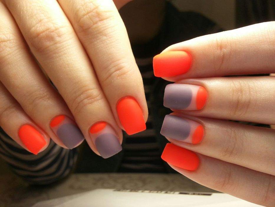 В целом это классический лунный маникюр, но с использованием ярких контрастных оттенков лака. Цветовая гамма может быть самая разная, причем вовсе не обязательно подбирать её к одежде. Такой маникюр вполне может быть самостоятельной единицей.