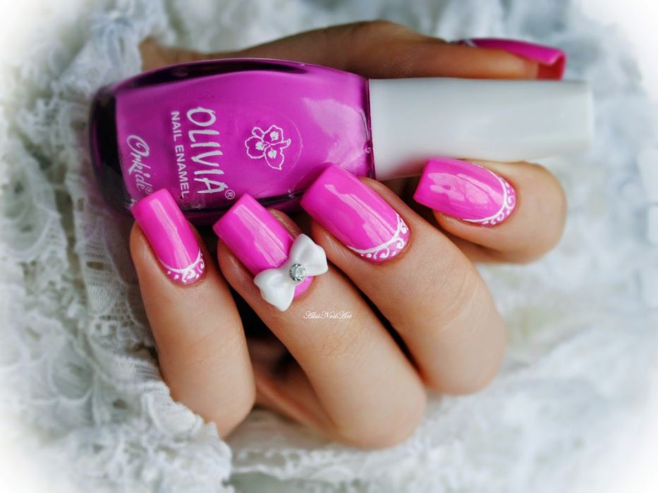 Любой вид маникюра можно разнообразить аксессуарами. В последнее время модными стали объемные 3D аппликации для ногтей. Чаще всего для лунного маникюра в качестве украшения используют бантики, которые смотрятся очень мило и кокетливо.