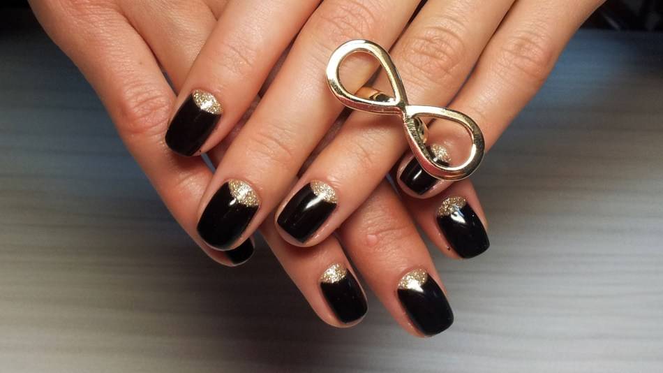 Черные ногти с золотыми лунками
