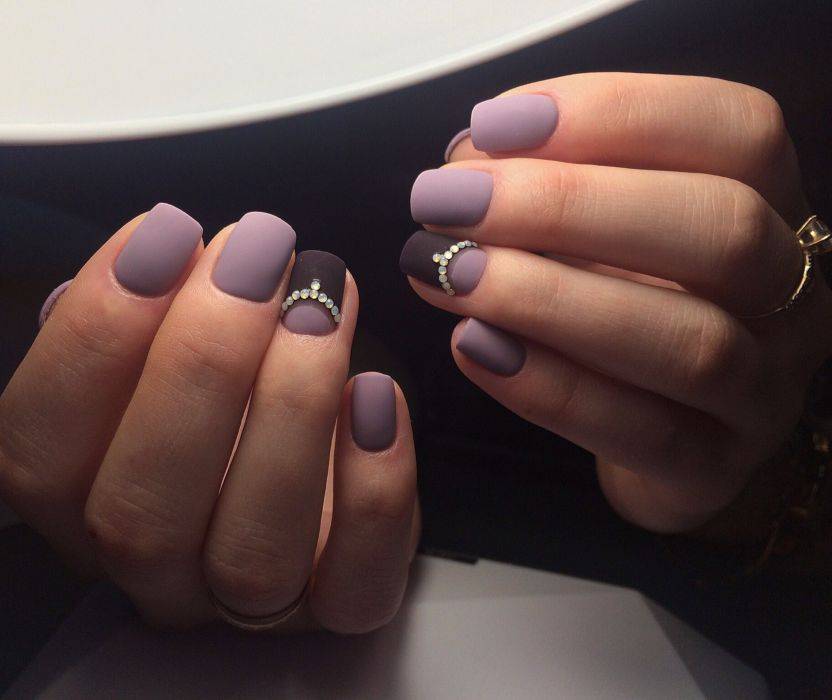 Несколько лет назад появился тренд — сочетание матового лака с металлическими элементами, в качестве которых использовали фольгу или специальный лак с металлическим эффектом.