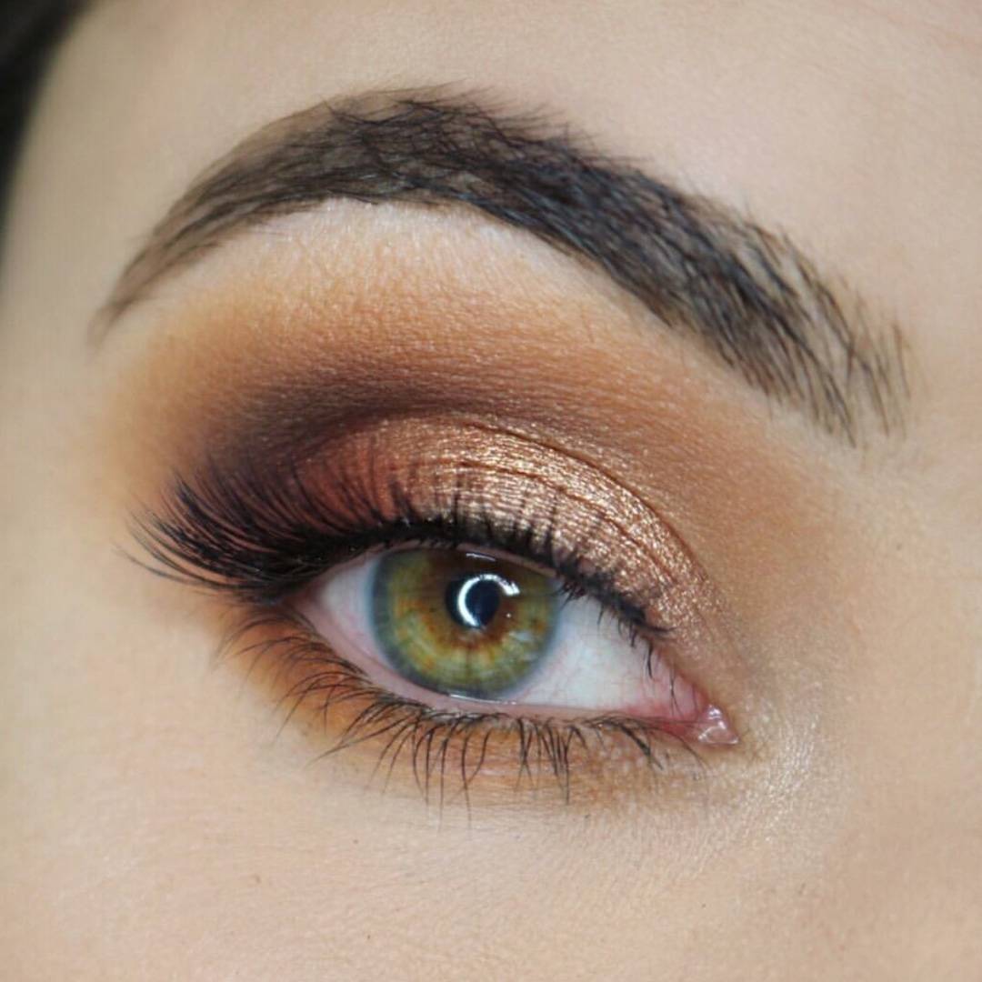 Хорошо на таких девушках смотрится палитра теней под цвет глаз, ну или универсальный серый цвет. Если же вы планируете создать более смелый и контрастный образ, в таком случае рекомендуется наносить каштановые, шоколадные или золотистые цвета.