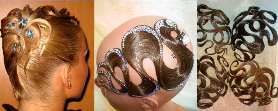 Этот вариант подходит и для европейской программы, а также хороши такие прически для гимнасток и балерин. Длинноволосые танцовщицы просто закручивают плотно волосы в гульку, заворачивая в сеточку под цвет своих волос, а обладательницам локонов средней длины для объема конструкции нужно воспользоваться поролоновым валиком.