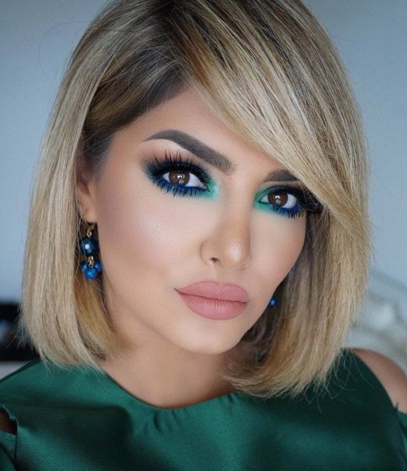 Синие оттенки также можно использовать, они визуально смягчают взгляд. Однако лучше отдавать предпочтение определённому тону теней только после тщательного подбора румян и помады, чтобы избежать перегруженности мейкапа.