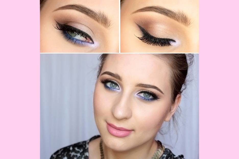 - Внешний уголок проработайте голубыми тенями, растушуйте.