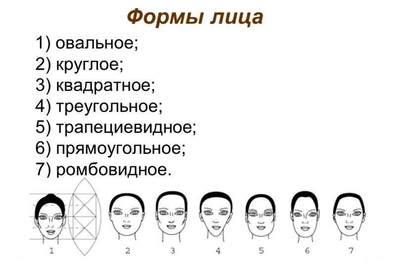 Учитывая соотношения ширины, длины и лицевые углы (подбородок, скулы), лица людей принято условно разделять на шесть типов: