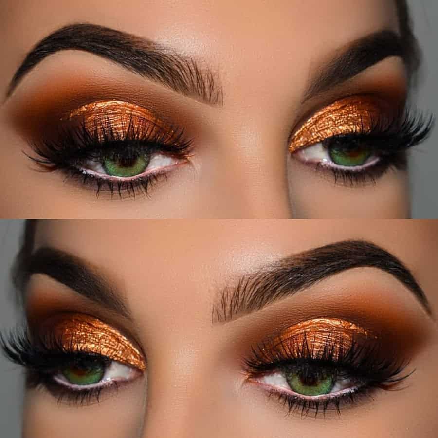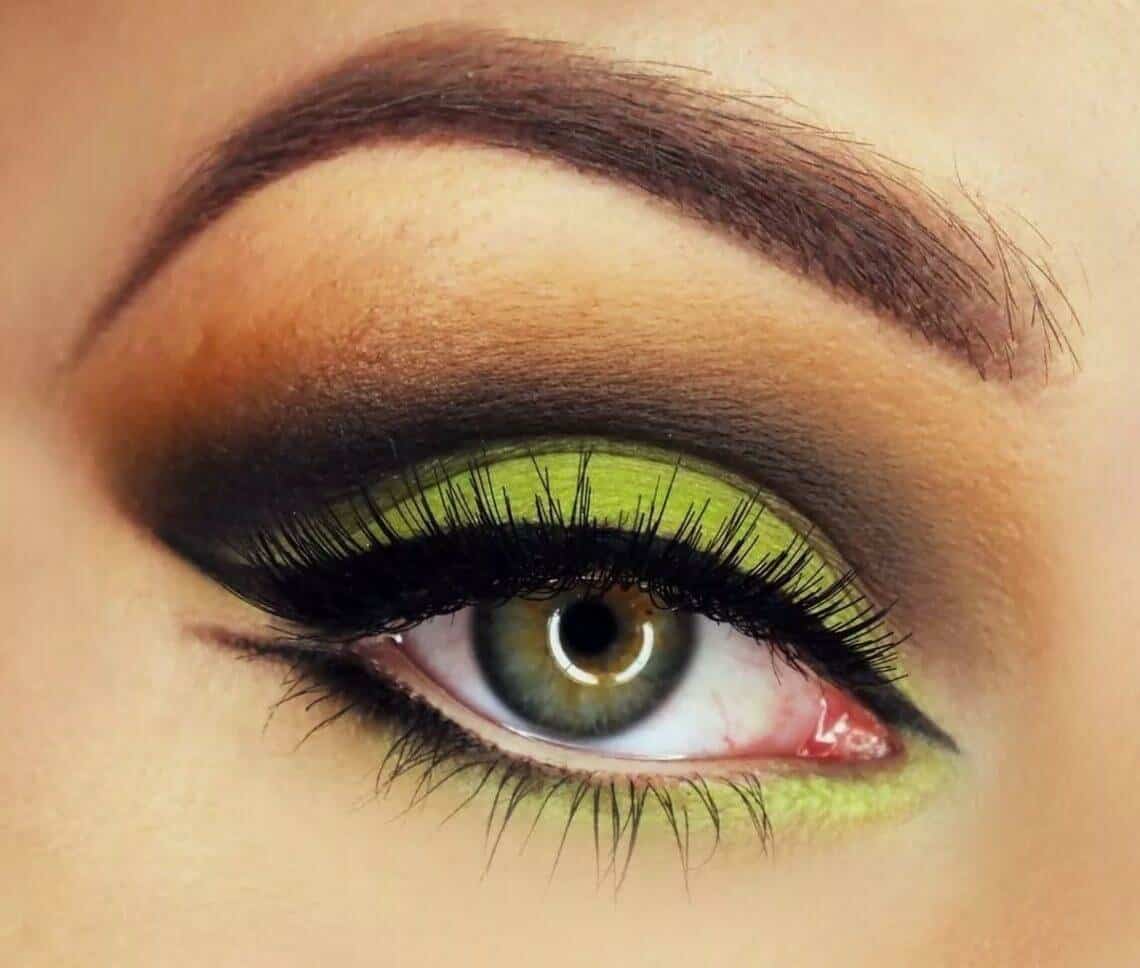- Для зеленых — вся гамма кремовых, коричневых, зеленых, золотых, лиловых, красно-коричневых, красно-фиолетовых, бордо, синих оттенков. Лучше всего выбирать темные тени с бархатным эффектом.