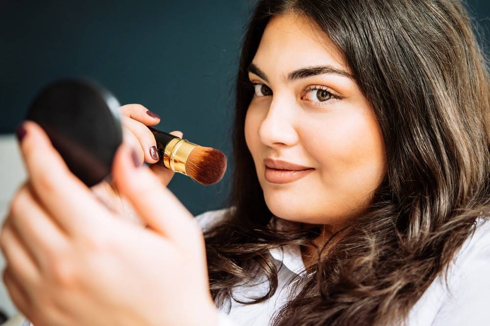 Припудривая лицо, уделяют внимание подбородку, скулам и Т-зоне. Выбирают минеральный состав мелкого помола