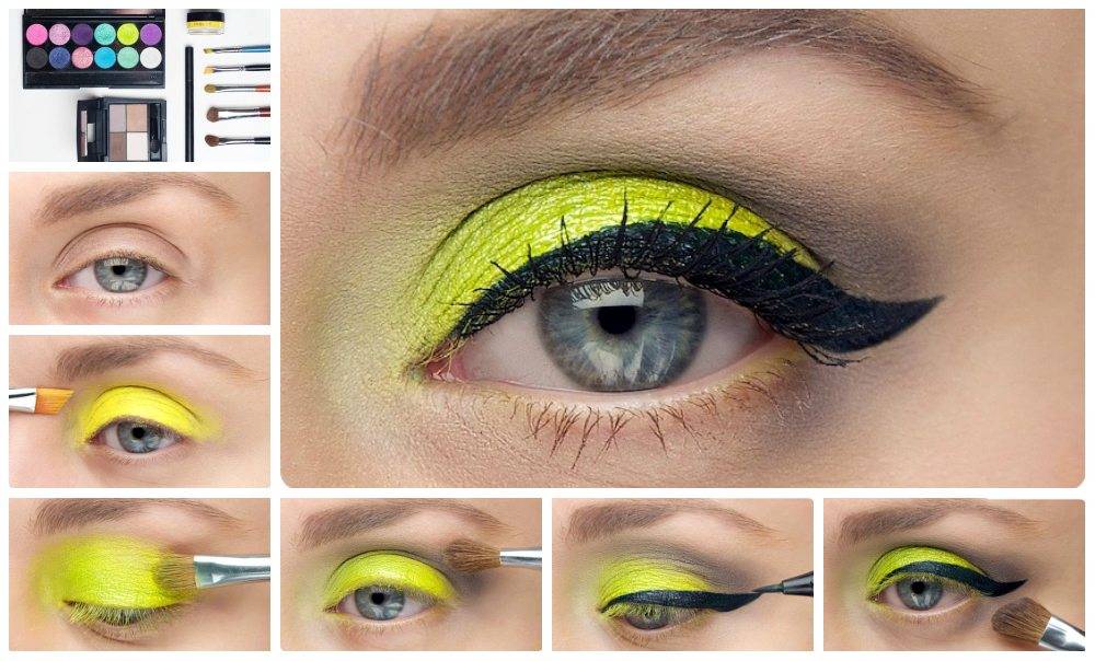 Цветные стрелки. Этот макияж – идеальный вариант на лето. На глазах можно использовать желтые, оранжевые, синие цвета. Для розовых и красных стрелок можно взять стойкую матовую помаду. При таком макияже все остальные зоны лица должны быть нейтральными.
