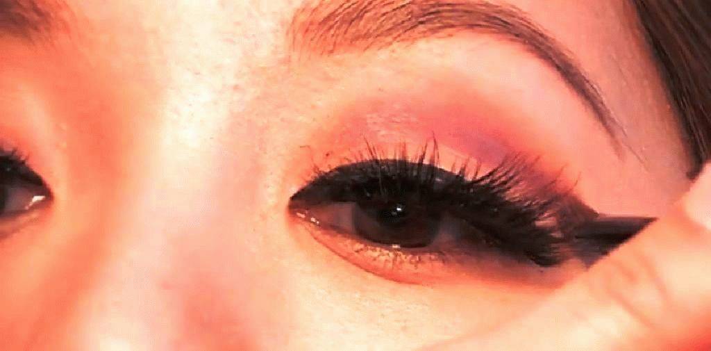 Не нужно путать японский макияж с арабским: в арабском линия от центра глаза по направлению к наружному углу постепенно приподнимается и в конце концов уходит вверх — по направлению к виску. Такой прием не поможет в создании азиатских глаз. Сначала линия идет непосредственно по линии ресниц до внешнего угла глаза, а только затем слегка приподнимается (смотрите изображение).
