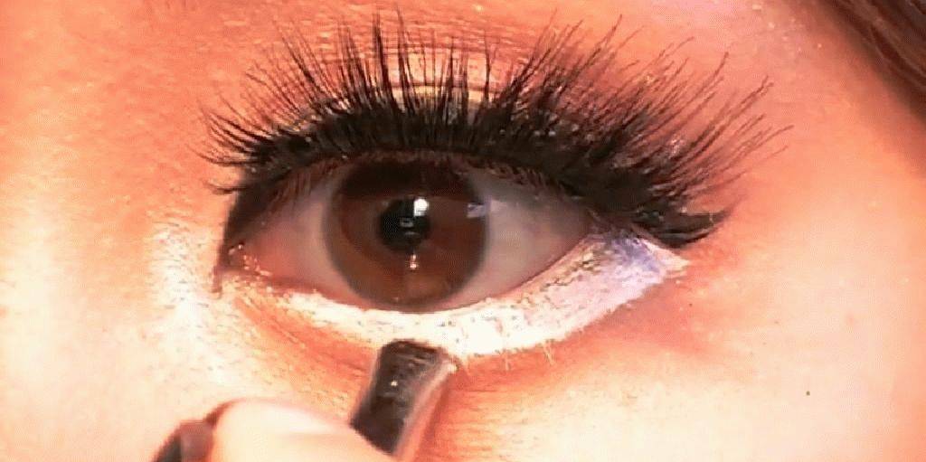 - Далее с помощью белого карандаша подводите и расширяете нижнее веко.