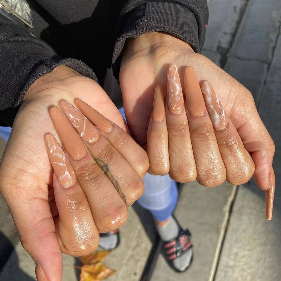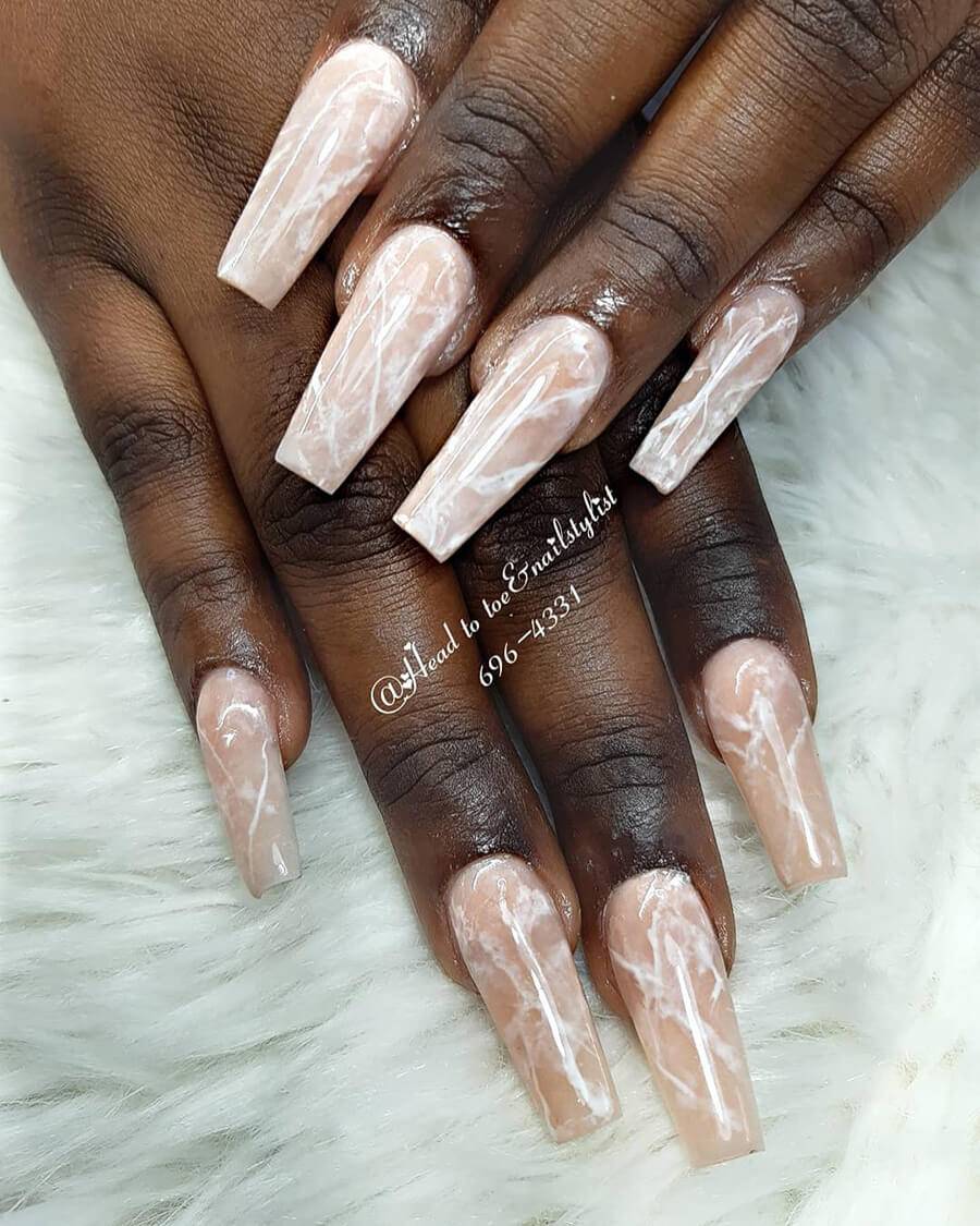 Еще один натуральный вариант покрытия, который делает едва заметный акцент на ваших руках. Оттенок лака чуть-чуть светлее вашего оттенка кожи, но при этом сильного контраста нет.