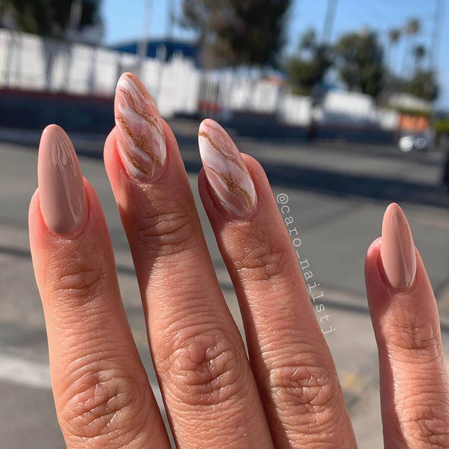 Если уж говорить об идеях нюдового маникюра, то нельзя не упомянуть и геометрический маникюр, который особенно хорошо смотрится именно вместе с нюдовыми оттенками.