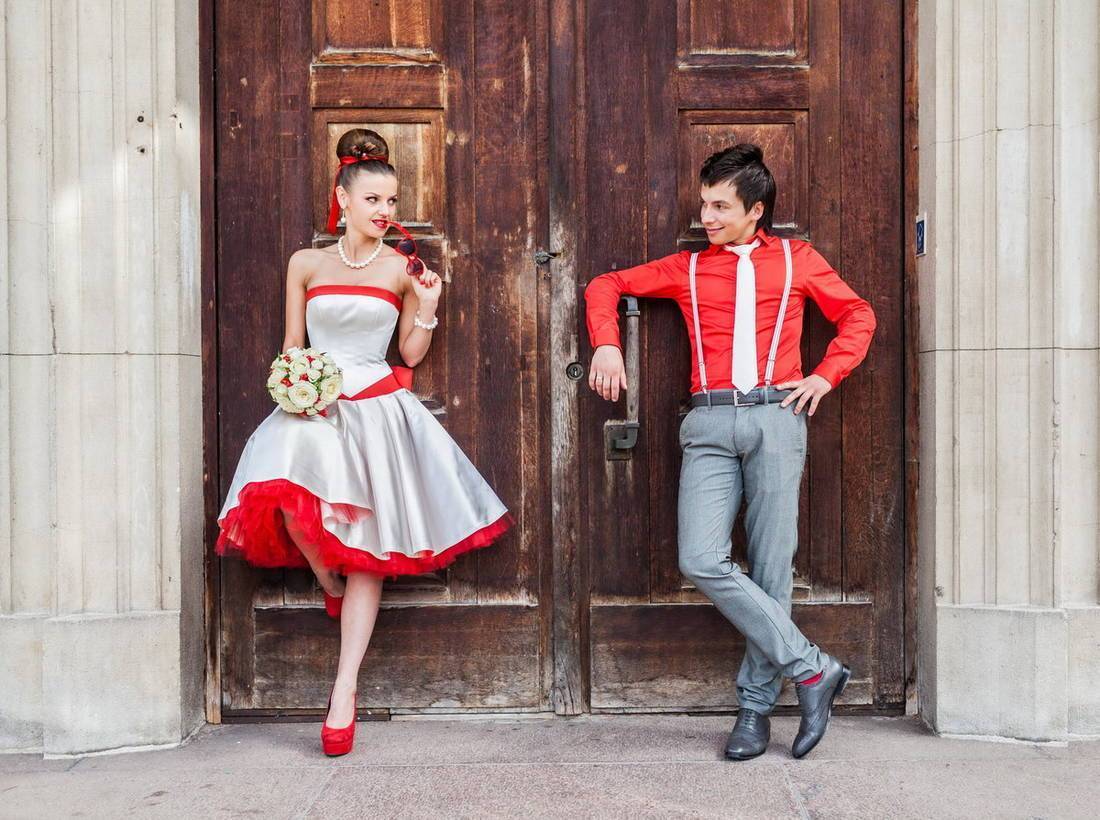 Мода далеко шагнула, но реплики часто встречаются на модных подиумах. Наверное, этим объясняется, почему для стилизованных вечеринок и прочих мероприятий в одежде так часто используется, объединяющий всех гостей, стиляжный стиль. Фото свадебной моды и праздничных вечеринок будут вдвойне интереснее в узнаваемом стиле недалекого красивого прошлого.