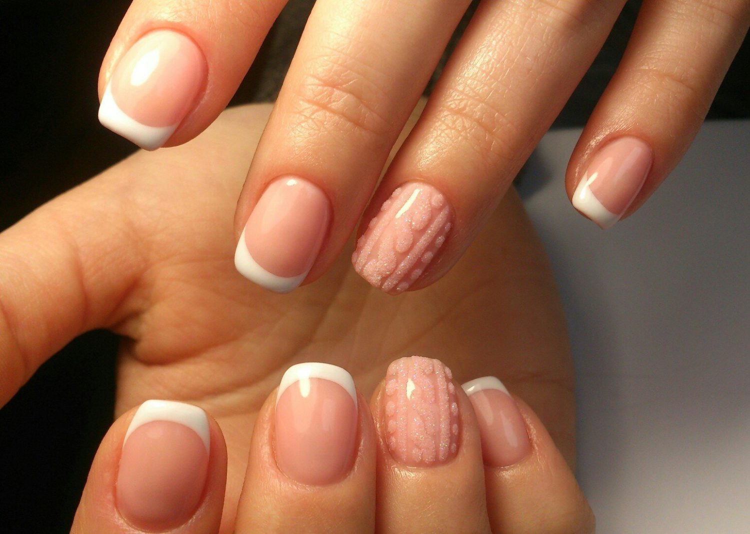 Оригинальным новшеством френча является тонкая контрастная линия, проведенная между кончиком и основной поверхностью.