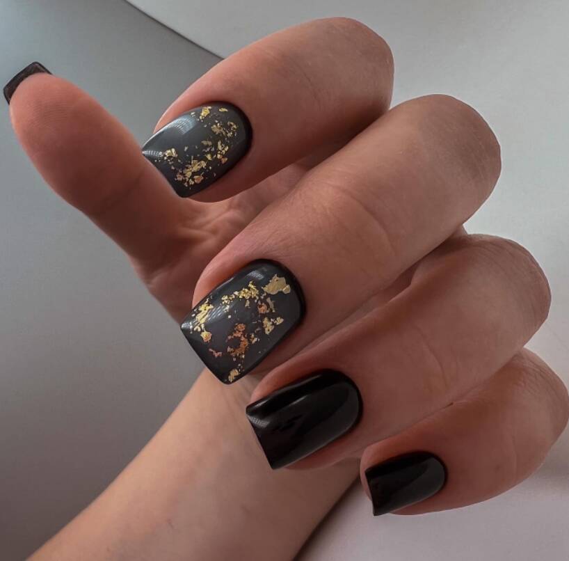 Трендом сезона 2022 будет также маникюр с металлизированным покрытием (фольга, поталь, сусальное золото). Цвет металла может быть совершенно разным, на усмотрение мастера. Сейчас применяются разные варианты, но самыми популярными на сегодняшний день являются: